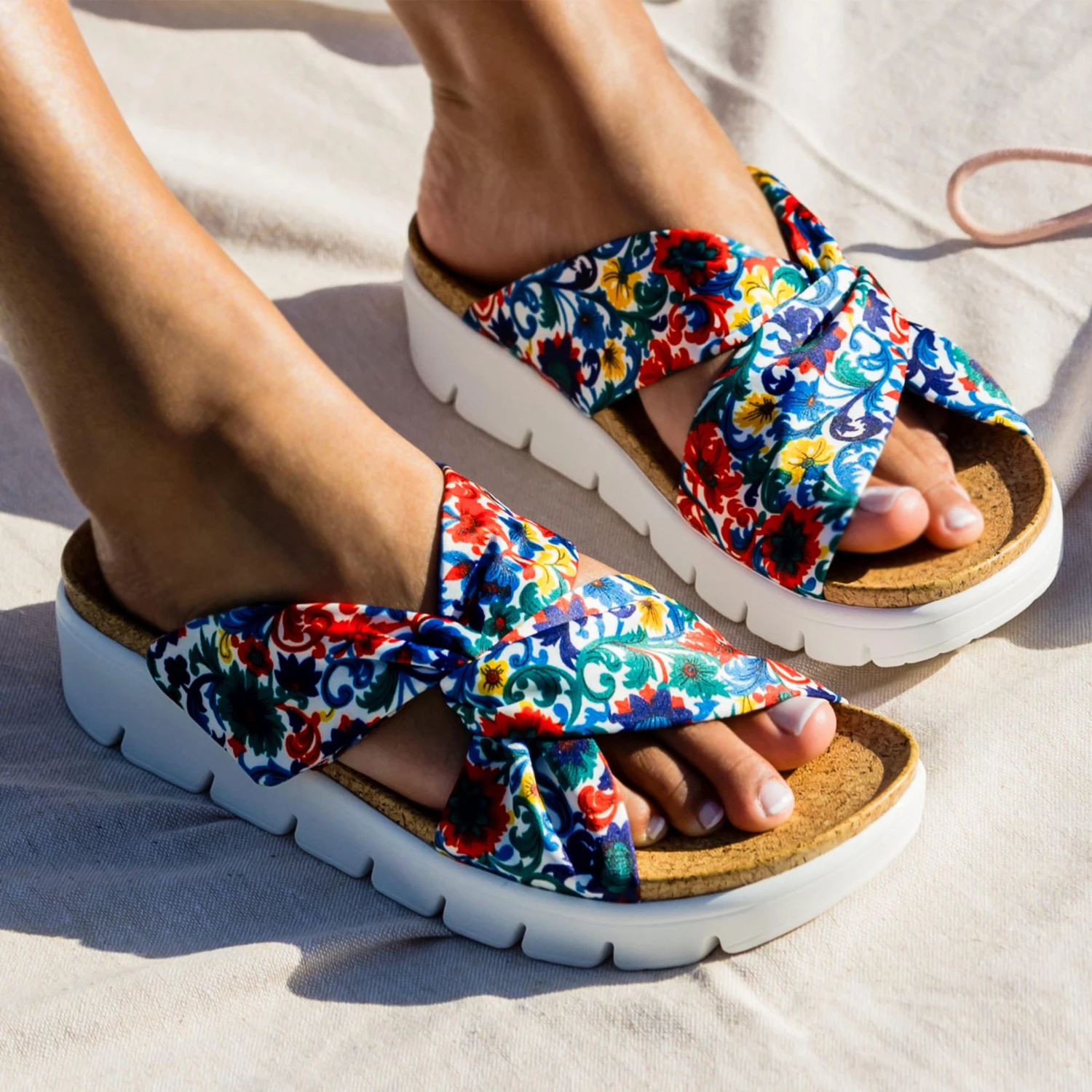 Featured in a Primary Party colorway on satin knotted uppers.